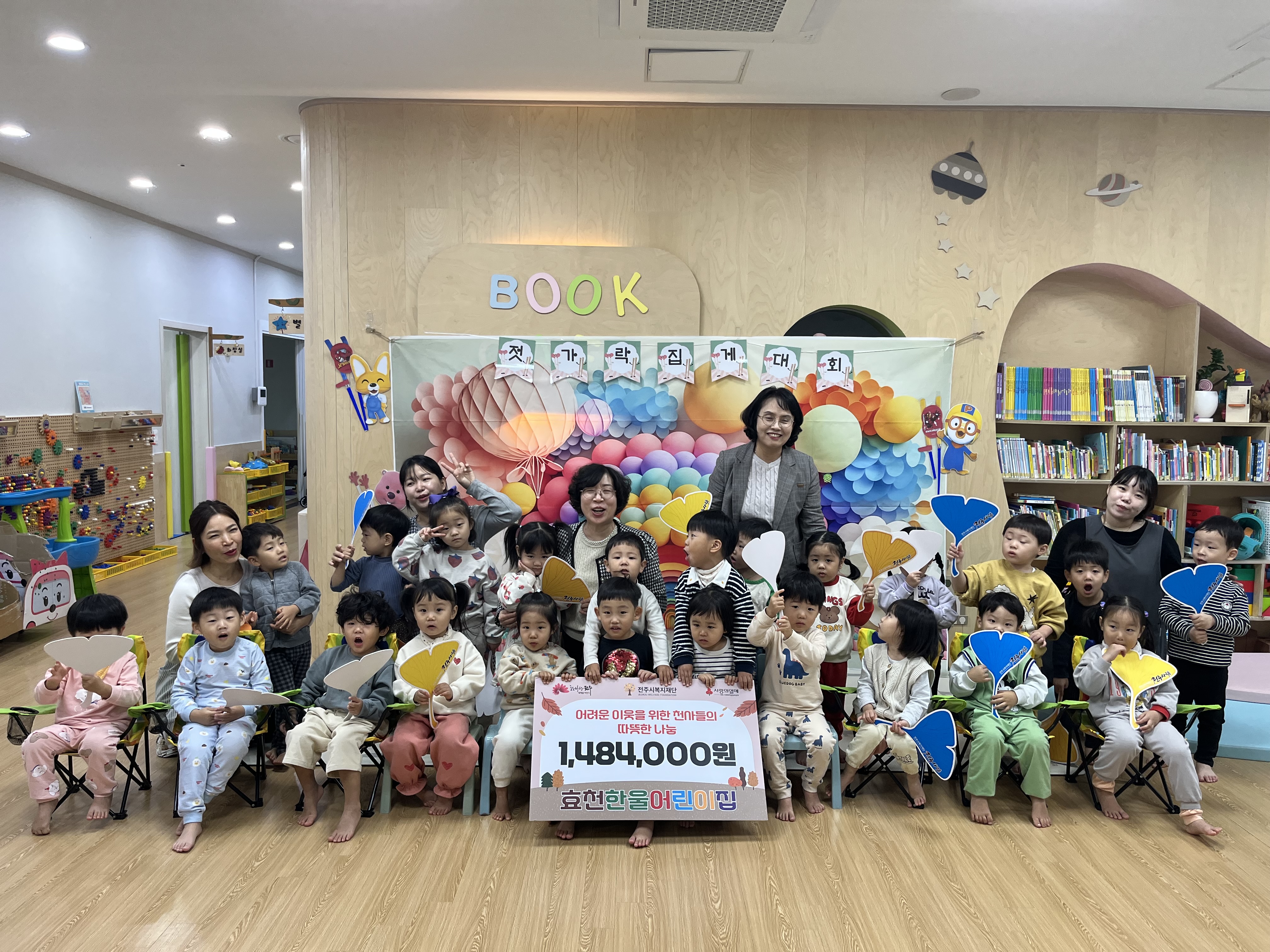 효천한울어린이집은 2023년부터 꾸준히 나눔 활동을 이어오며 아이들에게 나눔의 가치를 경험할 수 있는 교육적 환경을 제공하고 있습니다.