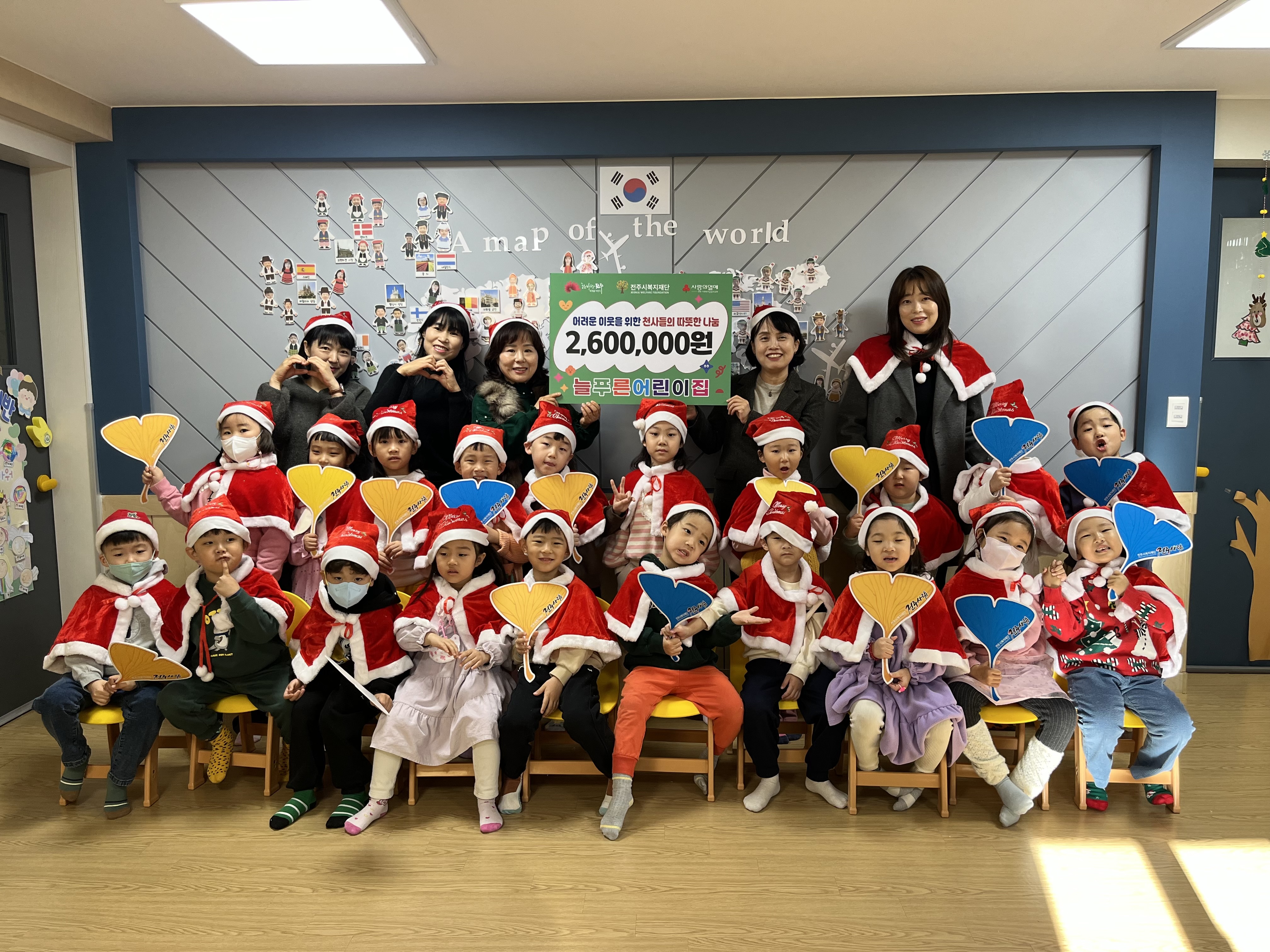 늘푸른어린이집이 전주시복지재단 ‘전주사람’에 성금 260만 원을 기부하며 복지사각지대 지원에 힘을 보태주셨습니다.