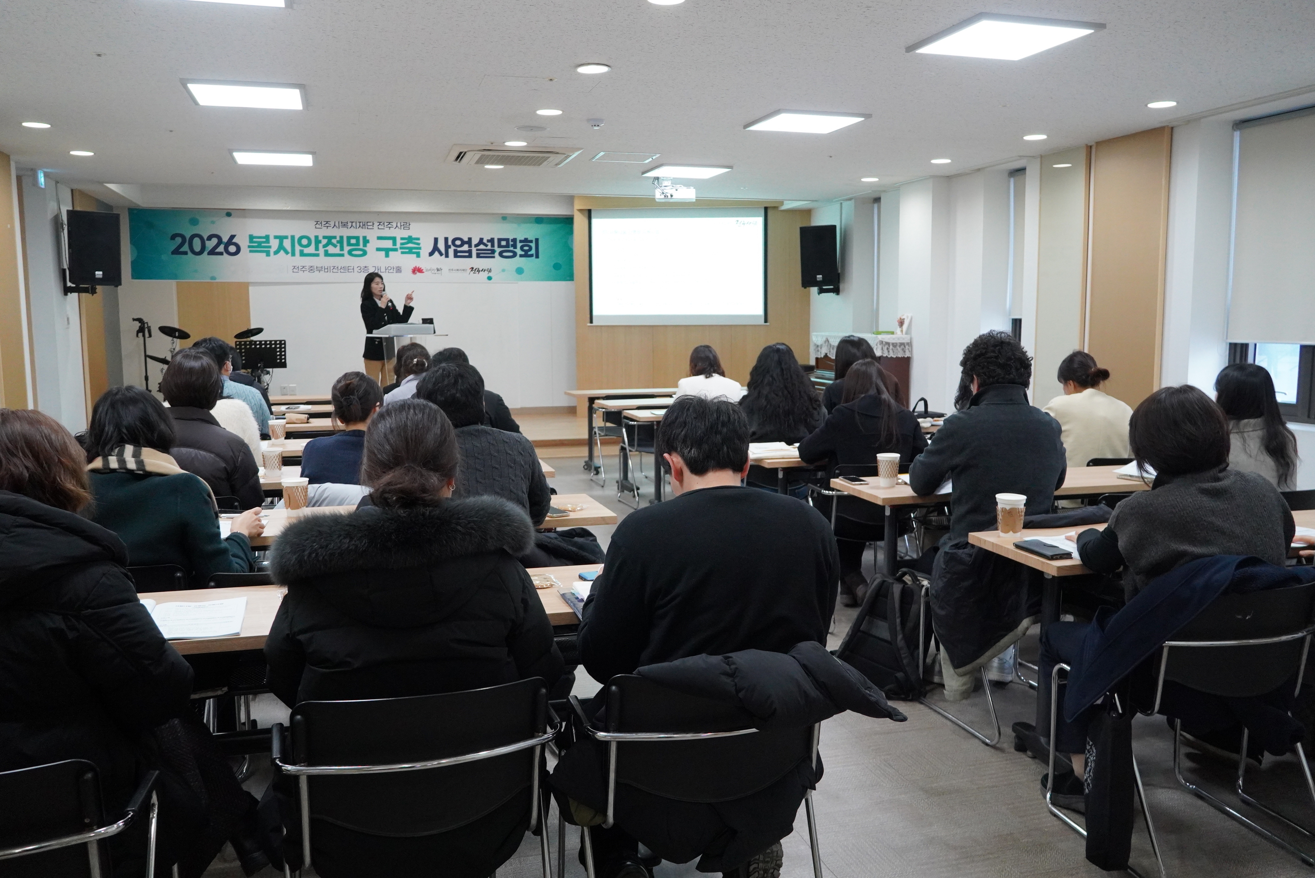 ○ 재단법인 전주시복지재단은 5일, 관내 구‧동 사례관리 담당자 50여 명을 대상으로 ‘2026년 복지안전망 구축 사업설명회’를 개최했다.