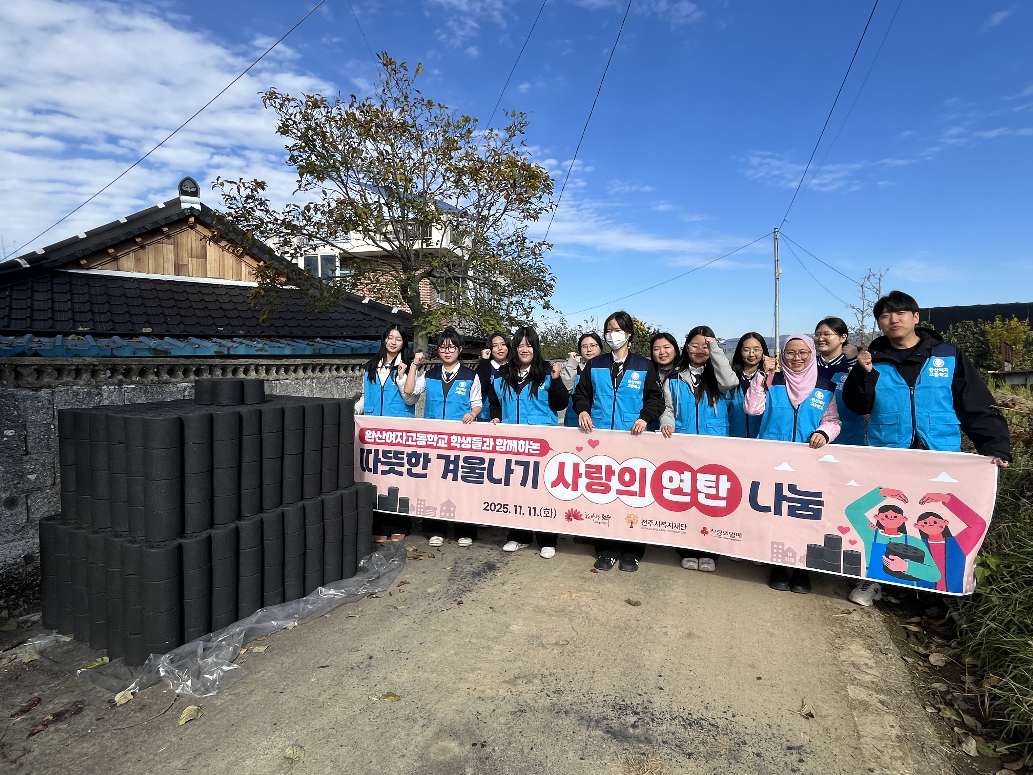 완산여자고등학교 관광서비스과 학생들이 창업카페 ‘델피늄’ 수익금으로 마련한 연탄 1,100장(100만 원 상당)을