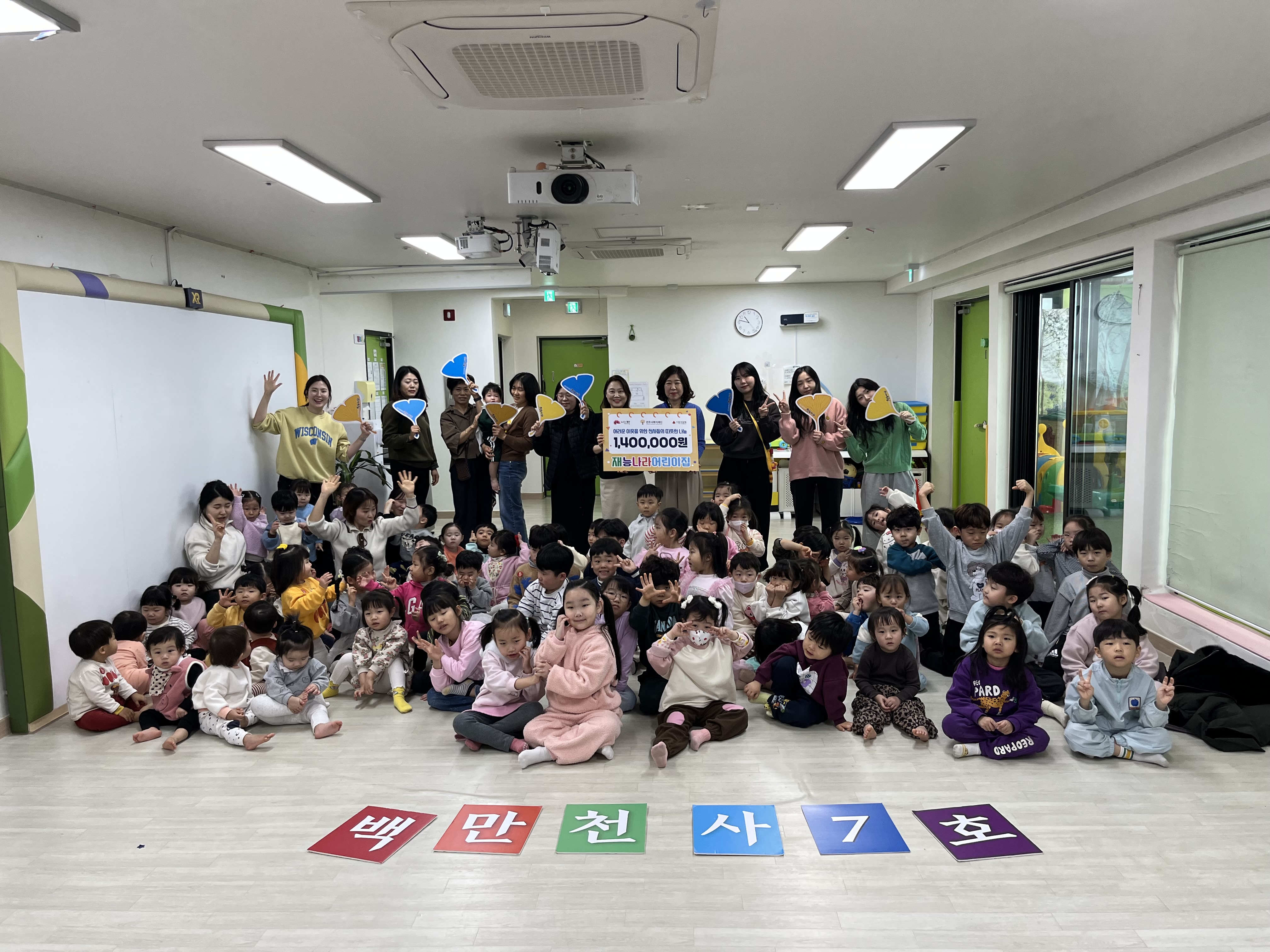 아울러 재능나라어린이집은 이번 나눔을 통해 2026년 백만천사 7호로 등록되며 지역사회 나눔 문화 확산에 뜻을 더해 주셨습니다.