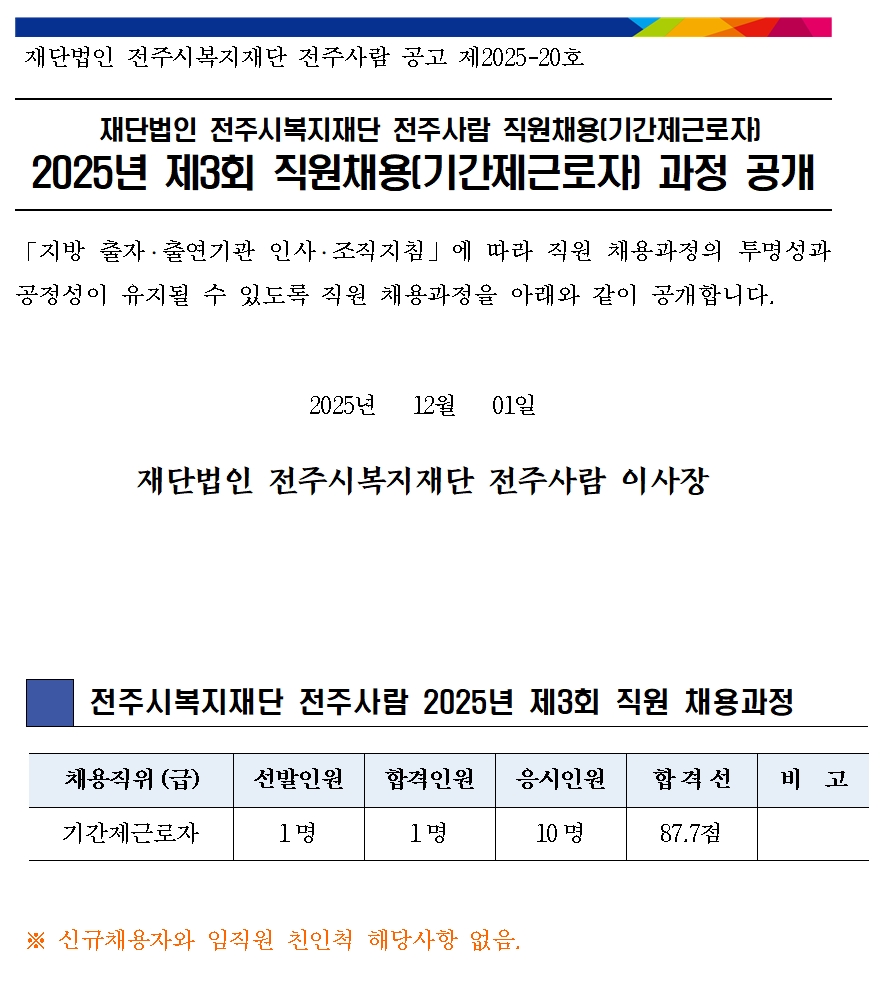2025년 제3회 직원채용(기간제근로자) 과정 공개
