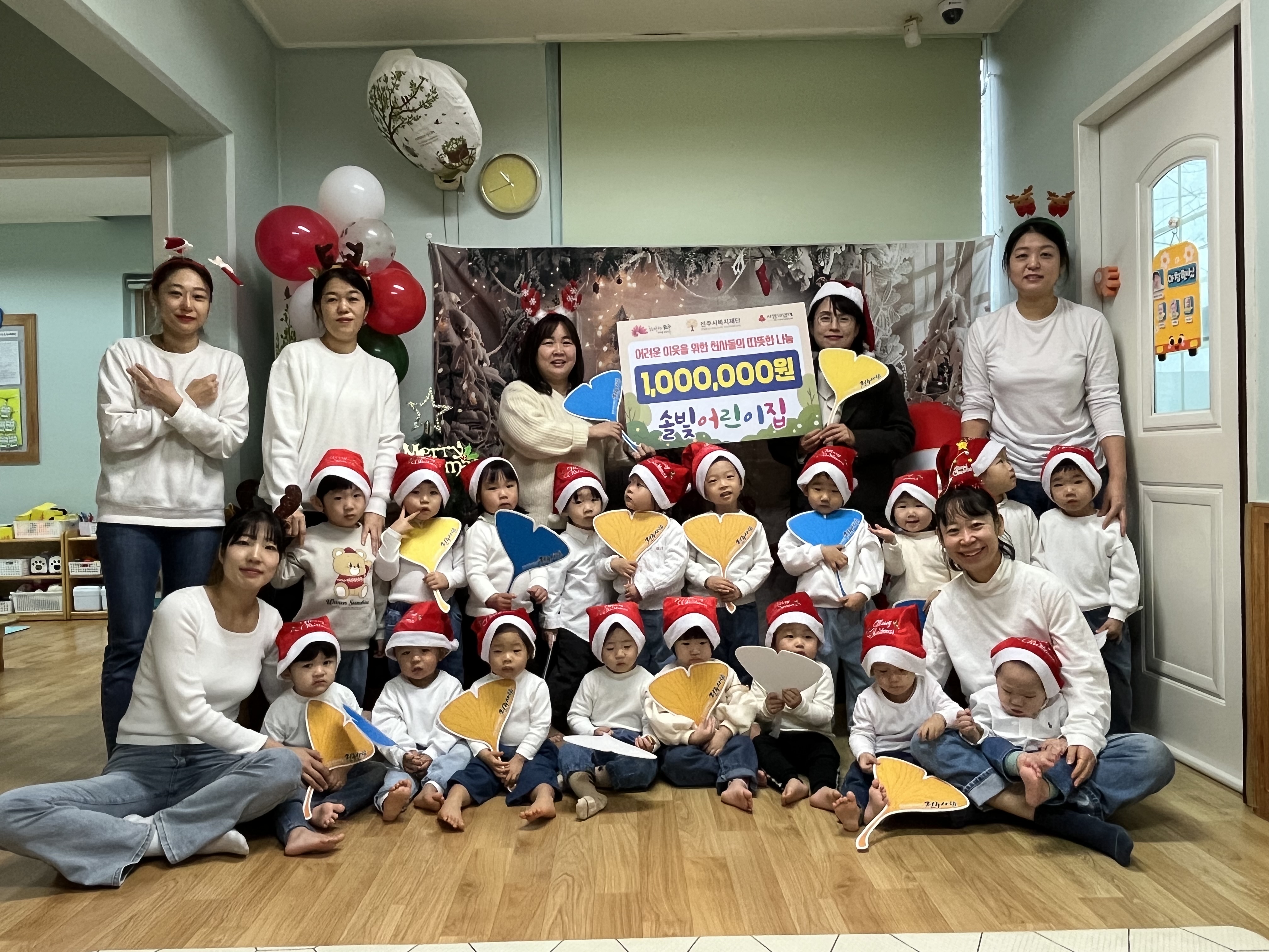 이번 기부로 솔빛어린이집은 전주시복지재단의 고액 기부자 모임인 ‘2025년 백만천사 91호’에 이름을 올렸다.