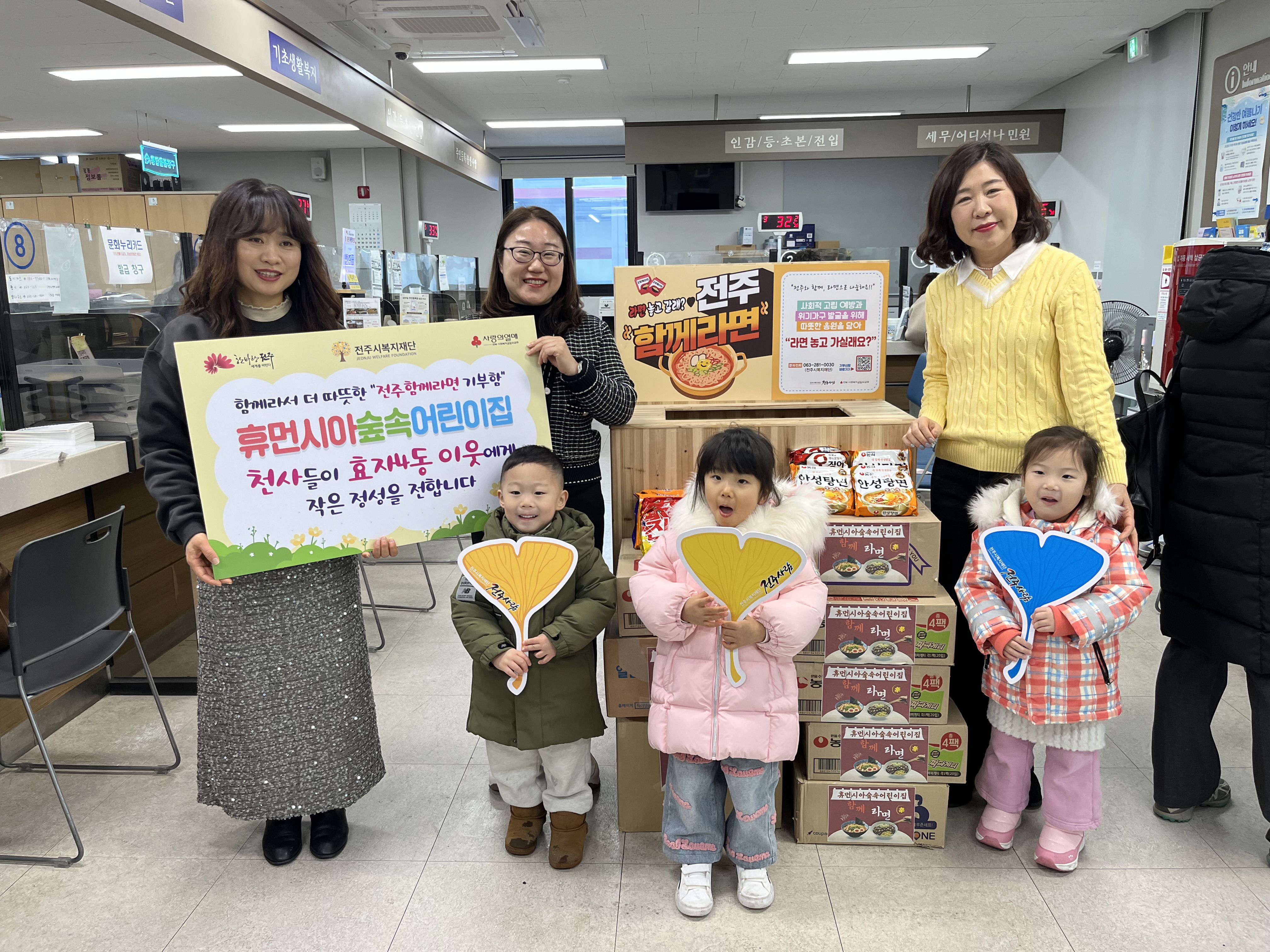 휴먼시아숲속어린이집(원장 김귀정)은 2일 전주시복지재단(이사장 윤방섭)에 라면 200개를 기탁하고, 효자4동 이웃을 위한 나눔에 동참했다.